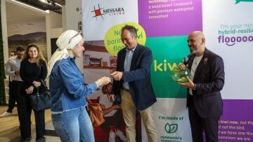 The highlight of the event was a panel discussion featuring Messara Group's Marketing and PR Manager, Shahad Alselmi, together with Kiwi's Robert Schneider (Managing Director of Sales and Marketing), Fabian Koelliker (Head of Marketing), and Gerhard Fischer (Sales Agent). Kiwi, made from 80% recycled wood and 20% paper and binding material, is PVC-free and free from toxic emissions, ensuring a healthy indoor environment and appealing to a vegan and eco-conscious market.