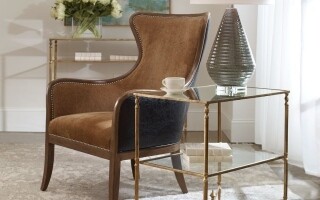 The Uttermost collection includes the stylish Wrenley Table Lamp, which beautifully complements any space with its precise design and warm lines. The collection also features the Henzler Glass Table, a glass side table with gilded and lambasted legs and a layered top made of reinforced glass.